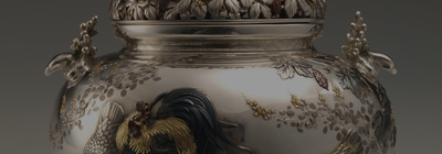 - 幕末・明治の金工・七宝・蒔絵・京薩摩・彫刻・美術染織などの工芸品を常時展示しています。