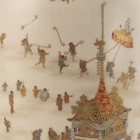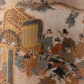 このたびの展示では、当館が誇る屈指のSATSUMAコレクションから「京薩摩」を中心に、「大阪薩摩」「神戸薩摩」も併せて展示いたします。色とりどりの絵付とまばゆい金彩の文様が織りなすSATSUMAのきらびやかな世界をどうぞお楽しみください。