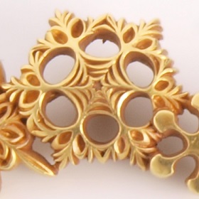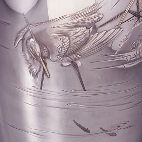 金工分野の第一人者、加納夏雄は、明治23年(1890)の発足と同時に帝室技芸員に選ばれ、東京美術学校彫金科の初代教授にも就き、後進の指導にあたった。その後、金工の帝室技芸員には、海野勝珉、香川勝廣、塚田秀鏡といった明治を代表する彫金の名工たちが任命された。彼らは、彫金界において、江戸時代までに培われた技術にさらに磨きをかけ、人間が達することのできる最高峰といっても過言ではない技をもって、優美で洗練された作品を多く残した。当時なら技術的に同等の職人たちもいたと思われるが、その品格、風格で他を圧倒しているのが帝室技芸員の作品の特徴といえよう。
