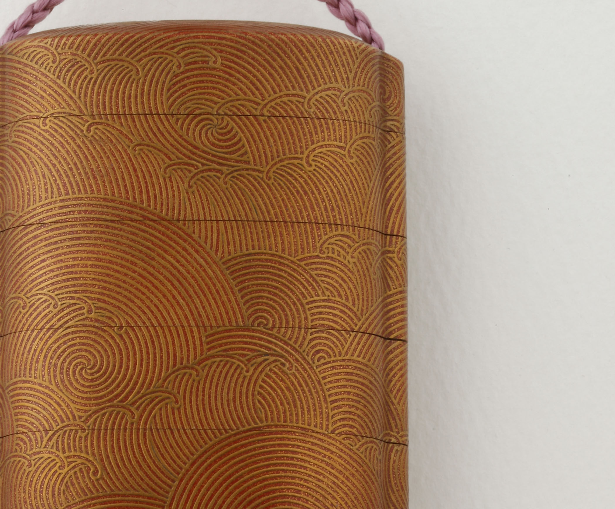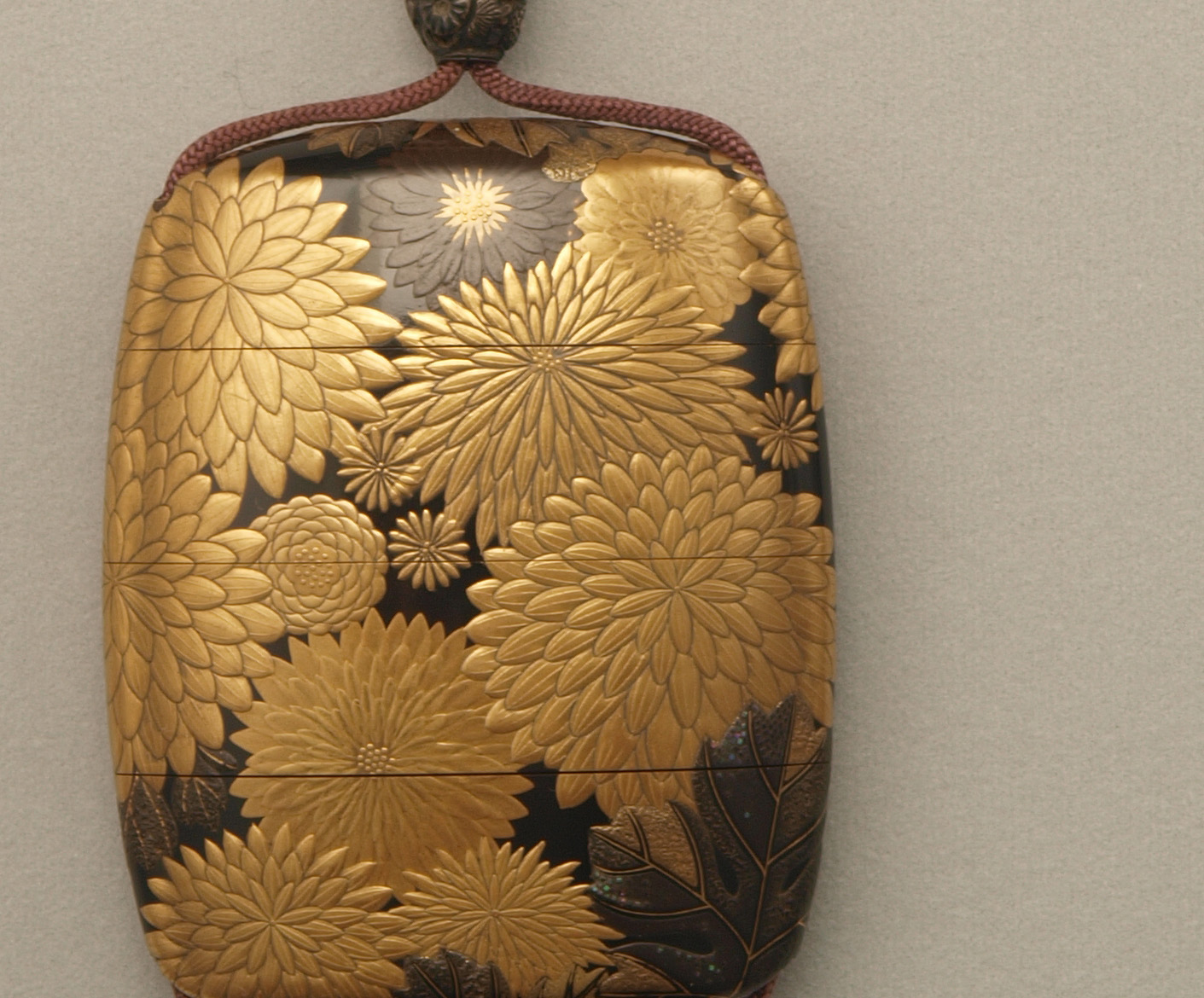 印籠は、帯に下げて携帯できる小型の容器のことをいい、主に江戸時代に薬入れとして用いられていました。やがて装身具としての役割を得て、蒔絵や螺鈿などで多彩な装飾が施されるようになると、美術品としても愛玩されるようになります。明治になると特に海外の愛好家を魅了し、おびただしい数の印籠が海を渡っていきました。
