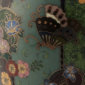 江戸時代末期に尾張の梶常吉によって考案されたと伝えられる近代の七宝は、明治時代、尾張と京都を中心に目覚ましい発展をとげました。当時盛んに行われた万国博覧会にも多数出品され、世界に類を見ない日本の美しい七宝は、欧米の人々からの称賛を受け、日本の一大輸出産業となりました。その透明感のある色彩豊かな装飾は、制作されてから100年以上を経た現在でも、色鮮やかなまま見る者を幻想的な花鳥風月の世界に誘います。
