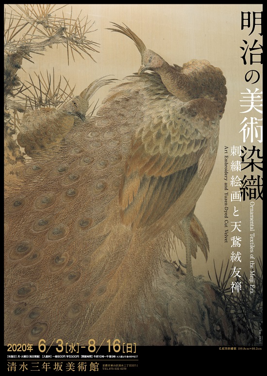 このたびの展示では刺繍や天鵞絨友禅の技法を用いた作品を中心に、優美で華やかな美術染織の魅力をご紹介いたします。ひと針ひと針モチーフを繍いあげる刺繍絵画は、一般的な絵画作品にはない絹糸や金糸の繊細なきらめきが見られます。また、天鵞絨友禅は明治時代に新たに開発された技法で、天鵞絨地特有の柔らかい質感や友禅染の見事な染め分けが持ち味です。驚くべき描写力が発揮された名品の数々をどうぞお楽しみください。