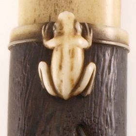 持ち主の好みに応じた様々な技法・素材・意匠の喫煙具は、次第にアクセサリーとしての役割も果たすようになりました。とくに煙管筒には、木材や象牙に彫刻したもの、蒔絵や彫漆で飾ったもの、細緻な籐編みを施したものなど多様な素材と技法が見られます。明治時代以降は帝室技芸員の手による作品も数多く残されました。