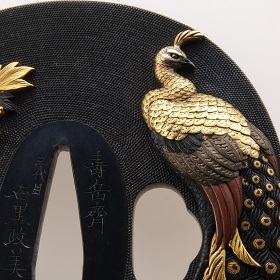 このたびの展示では、石黒派きっての名工として知られる政常や政美をはじめ、当館が所蔵する石黒派の刀装具を網羅的にご紹介します。絢爛豪華にして緻密な作品の数々をどうぞご堪能ください。