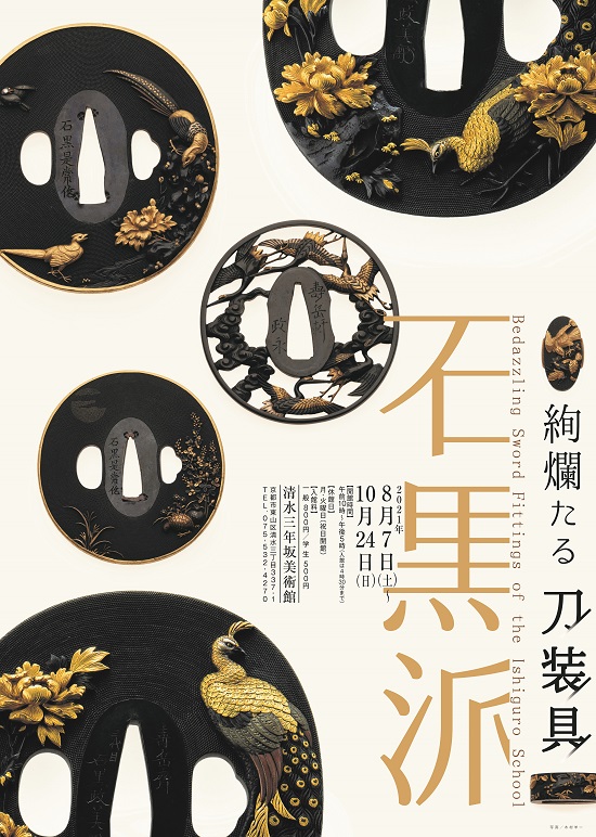 石黒派は初代石黒政常を祖とする在野の彫金家の一派です。江戸時代後期から末期にかけて多くの門弟を有し、花鳥を装飾的に描き出す精巧な高彫色絵の手法を得意としました。手のひら大にも満たないほど小さな金具の中に華やかな世界を表現する石黒派の刀装具は、現在でも愛好家の間で高い人気を誇ります。