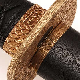 刀装具は古くから用いられてきた刀剣の保護・外装のための部品です。江戸時代には将軍家・大名家のための豪華な刀装金具が作られるようになりました。また町人の台頭以降は、在野の彫金家たちが脇差の帯刀を許された豪商等の求めに応じ、ますます幅広い表現や技術が見られるようになりました。