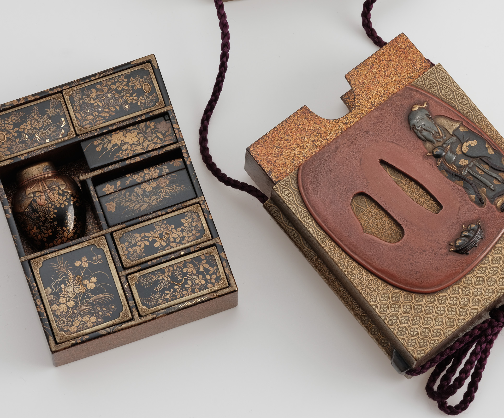 江戸から明治期の日本においては、金工、漆芸、彫刻といった手工芸の分野が技法的にも芸術的にも頂点に達した時代といわれています。戦のない泰平の江戸時代に大名や町人らが身の回りの調度品や刀装具などに趣向を凝らすようになったことで、多様で豪華な細工を施す職人たちが現れ、技術が発展していったのです。度重なる奢侈禁止令を潜り抜け、写実表現を取り入れた精緻なもの、更には原寸よりずっと小さく作られたミニチュア工芸といったものも制作され、人々の目を楽しませました。